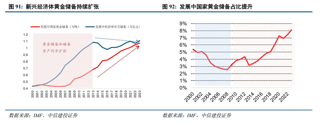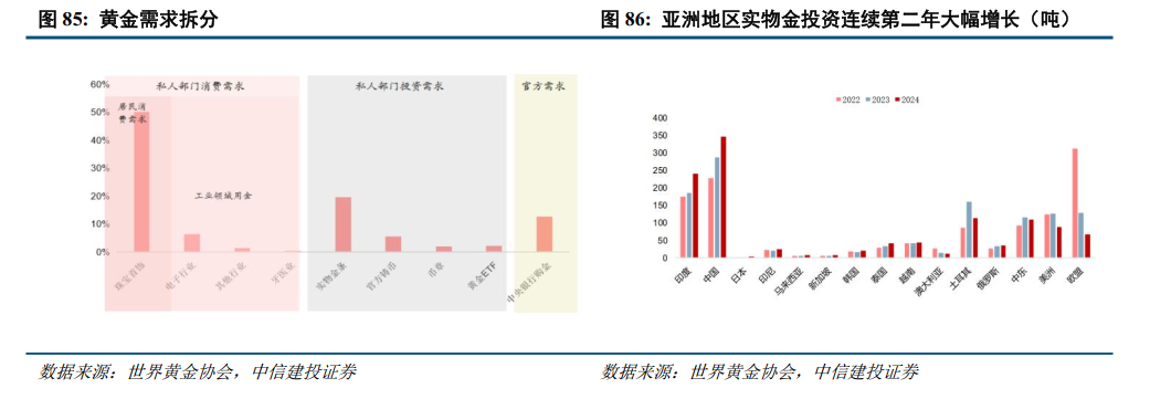 除央行购金外,新兴市场国家私人部门投资需求将持续增加。基于央行购金相似的逻辑,新兴市场国家私人部门在获得对西方国家的贸易顺差后,将会对美债等美元资产的配置部分转向其他类型的投资品,黄金是重要投资类别之一,而随着关税博弈下金融秩序重构和全球金融市场波动,以及美国政府公信力的持续下降,黄金等“代货币”的配置占比将持续抬升。